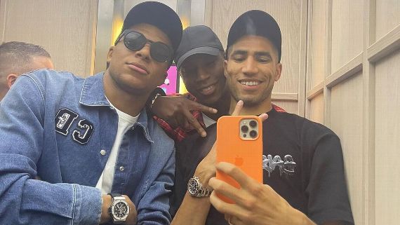 El francés Kylian Mbappé aprovechó el día libre de la plantilla del París Saint-Germain para comer en la capital de España con el marroquí Achraf Hakimi, compañero actual de vestuario y con el que mantiene una buena relación, incrementando así los rumores que le sitúan en el Real Madrid la próxima temporada.